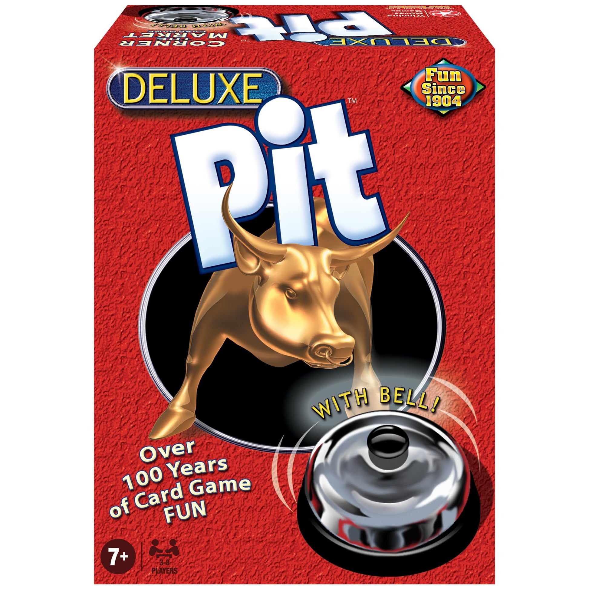 Deluxe Pit is a fast-paced, classic card game of open trading and quick thinking, where players compete to corner the market on a specific commodity. Featuring a bell for added excitement, the game simulates the chaos of the stock market as players shout and swap cards in real-time to collect a full set of matching goods like wheat, barley, or corn. With no turns and non-stop action, Deluxe Pit is an energetic game that keeps everyone engaged. Perfect for family gatherings and parties, it’s easy to learn, endlessly fun, and brings out the excitement of fast-paced negotiation and strategy.