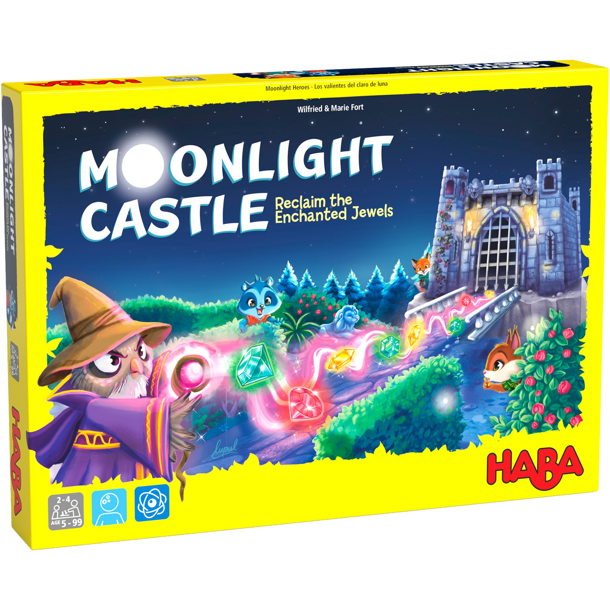 Tonight won't be a peaceful night! In the garden of the Moonlight Castle, Zirroz the magician uses his power to make all the kingdom's jewels magically float away. To stop him, the players creep cleverly through the castle garden and collect colorful pebbles. They pick the right moment to secretly swap them for the stolen gems. But be careful the colors need to match, otherwise the plan won't work! The player who recovers the most jewels wins. A magically colorful collecting and sliding game.